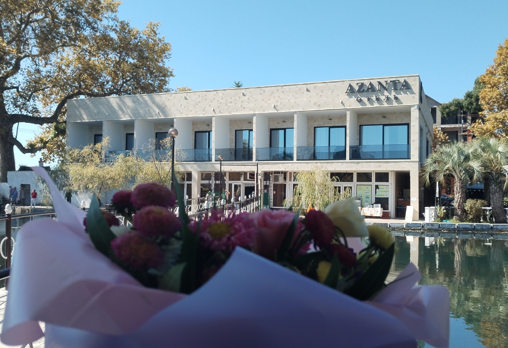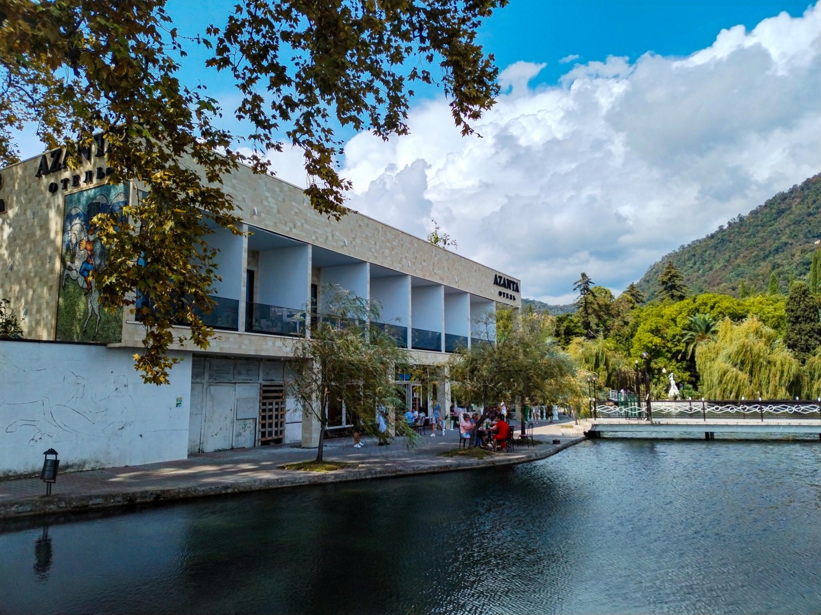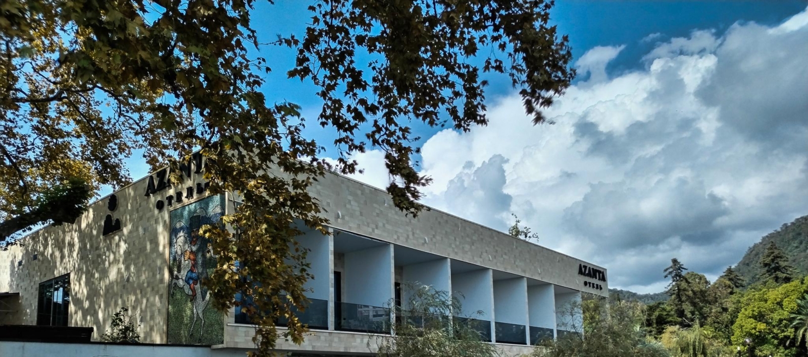 Отель расположен в центральной части города Новый Афон и является зданием старого ресторана «Аждария» (полная реновация). Расположен на основной городской магистрали, рядом с живописным городским парком, морем, озером с лебедями (напротив). Отель находится на уступчивом рельефе, с главного фасада 1-этажное здание, с противоположной стороны здание 2-этажное. Открывается прекрасный вид на парк и пруд. Большое количество зеленых насаждений и отсутствие высотной застройки поблизости.