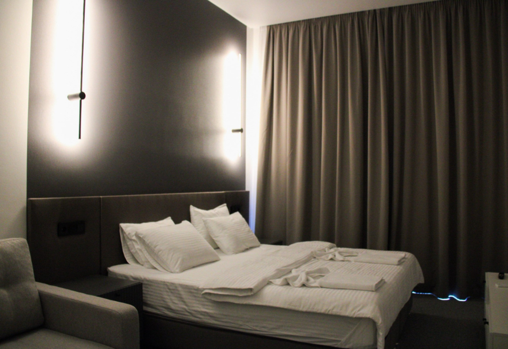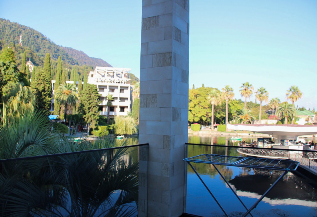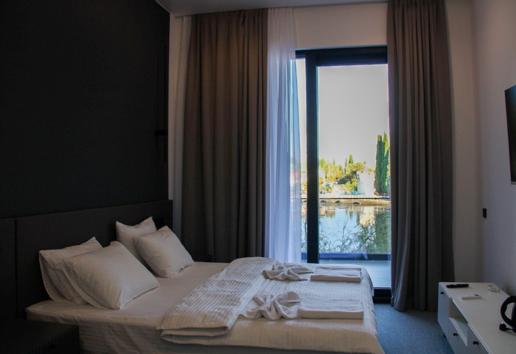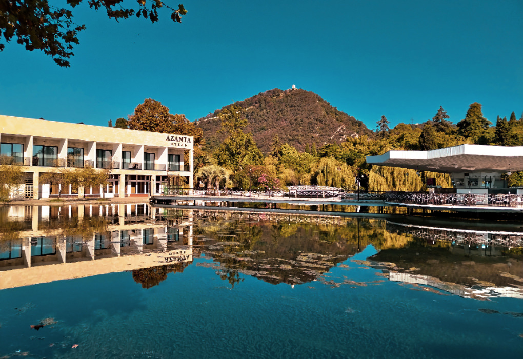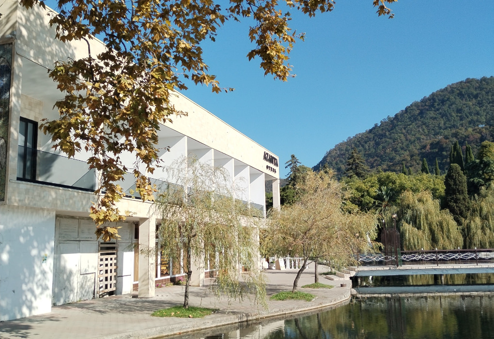 Отель расположен в центральной части города Новый Афон и является зданием старого ресторана «Аждария» (полная реновация). Расположен на основной городской магистрали, рядом с живописным городским парком, морем, озером с лебедями (напротив). Отель находится на уступчивом рельефе, с главного фасада 1-этажное здание, с противоположной стороны здание 2-этажное. Открывается прекрасный вид на парк и пруд. Большое количество зеленых насаждений и отсутствие высотной застройки поблизости.
