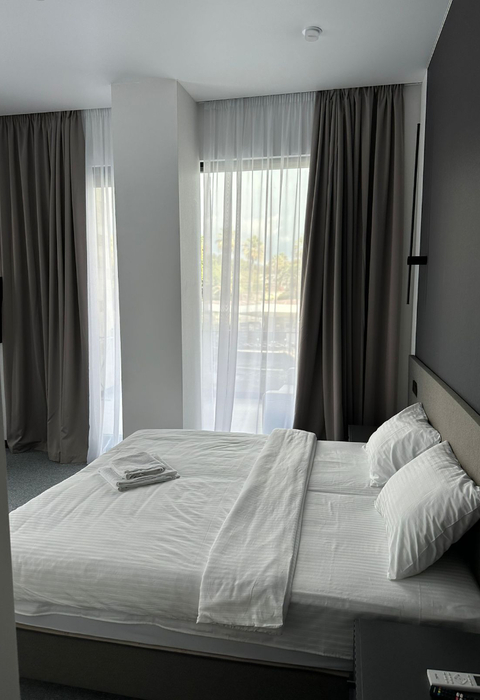 Площадь номера - 25-35 кв.м. 1 комната. 2 осн. места. средства личной гигиены. В номере: телевизор; сплит-система; душ; фен; халаты; тапочки; туалетные принадлежности; 2-спальная кровать; диван; чайная станция. 2 доп. места: Раскладной 2-спальный диван - может быть установлен без ограничения по возрасту .